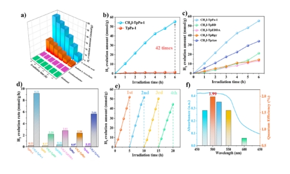 (1)首次提出一种新颖的离子极化策略来提升COFs材料电子-空穴分离及迁移效率。
